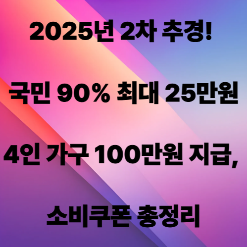 2025년 2차 추경! 국민 90% 최대 25만원·4인 가구 100만원 지급, 소비쿠폰 총정리